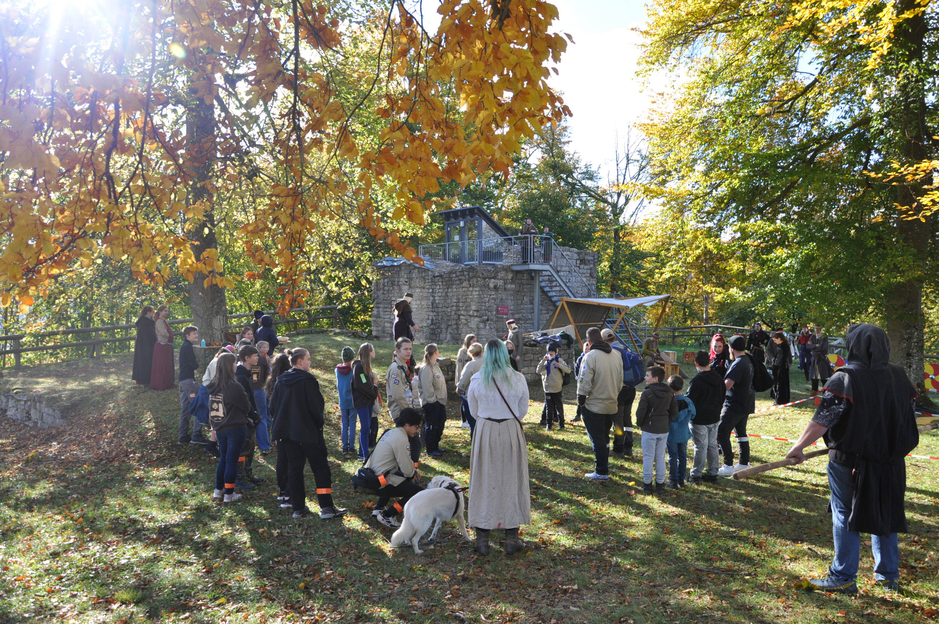 Unser Bezirkstag am 23.10.2021 auf der Hiltenburg bei Bad Ditzenbach fand unter dem Thema „Mittelalter“ statt. Teilnehmer von jung bis alt, von Knapp:innen bis zu Ritter:innen und von edlen Herren und Herrinnen, wurden vom Grafen zu Hiltenburg eingeladen, um an seinem Fest teilzunehmen und seine Macht zu unterstützen. Doch Familienstreitigkeiten trüben das schöne Bild auf der Hiltenburg.