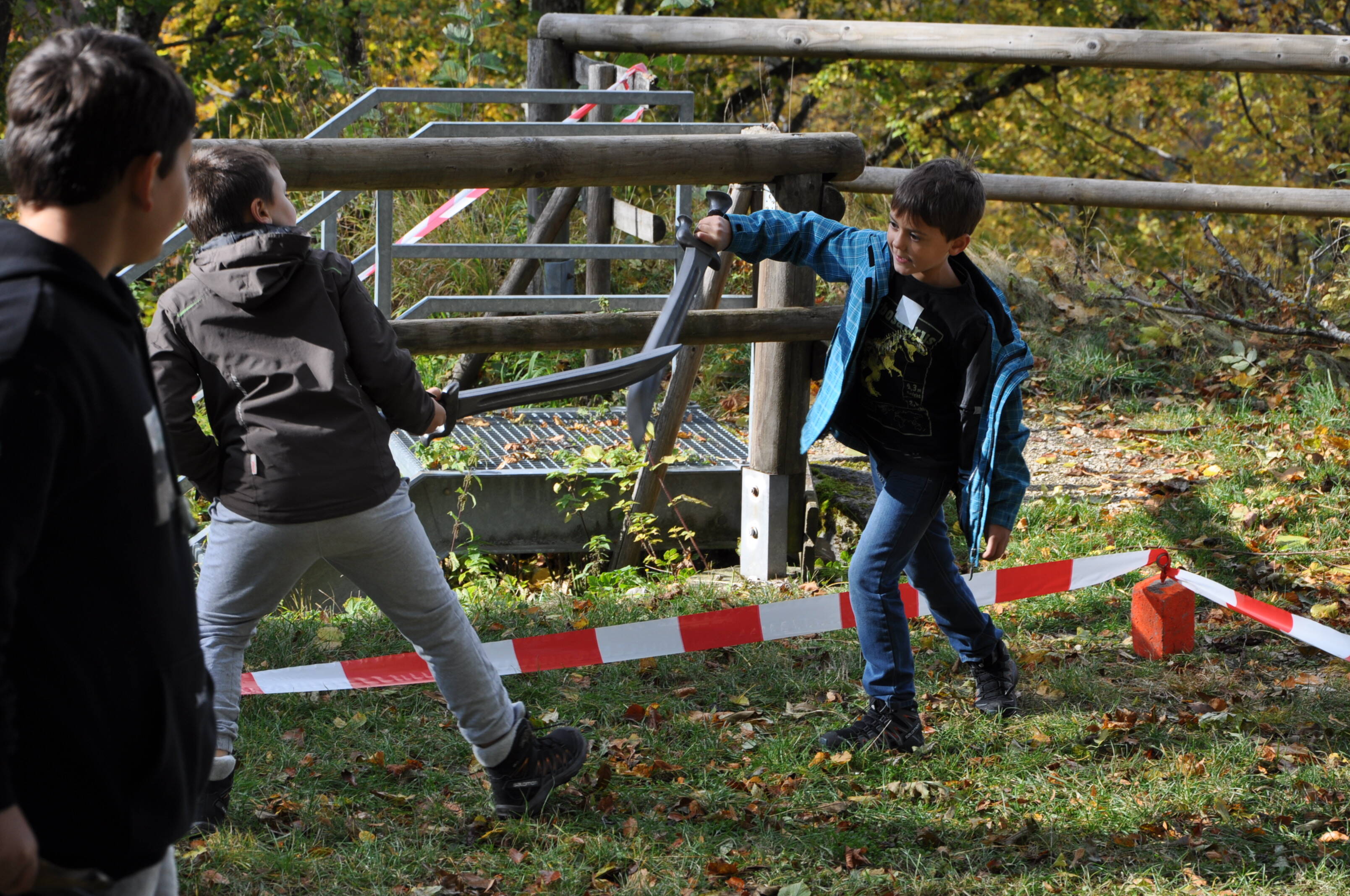 Dabei hatten wir tatkräftige und mannshohe Verstärkung durch die Ritterschaft zu Gmünd, die zum einen die Teilnehmer in das Handwerk des Schmiedens eingeführt haben. So hatte jedes Kind die Möglichkeit, einen eigenen Hering herzustellen und einzelne selbstgemachte Schmuckstücke sowie Alltagsgegenstände zu bestaunen. Zum anderen bildeten sie die Teilnehmer zu kleinen Rittern aus, führten sie in die Ess-Gewohnheiten der Leute aus dem Mittelalter ein, stellen Schleudern her und zeigten ihr Können in kleinen Schaukämpfen. Die Teilnehmer konnten echte Schwerter, nachgestellte Rüstungen, sowie Kleidungsstücke und anderweitige Sachen anfassen, sich erklären lassen, selbst anziehen und verwenden.