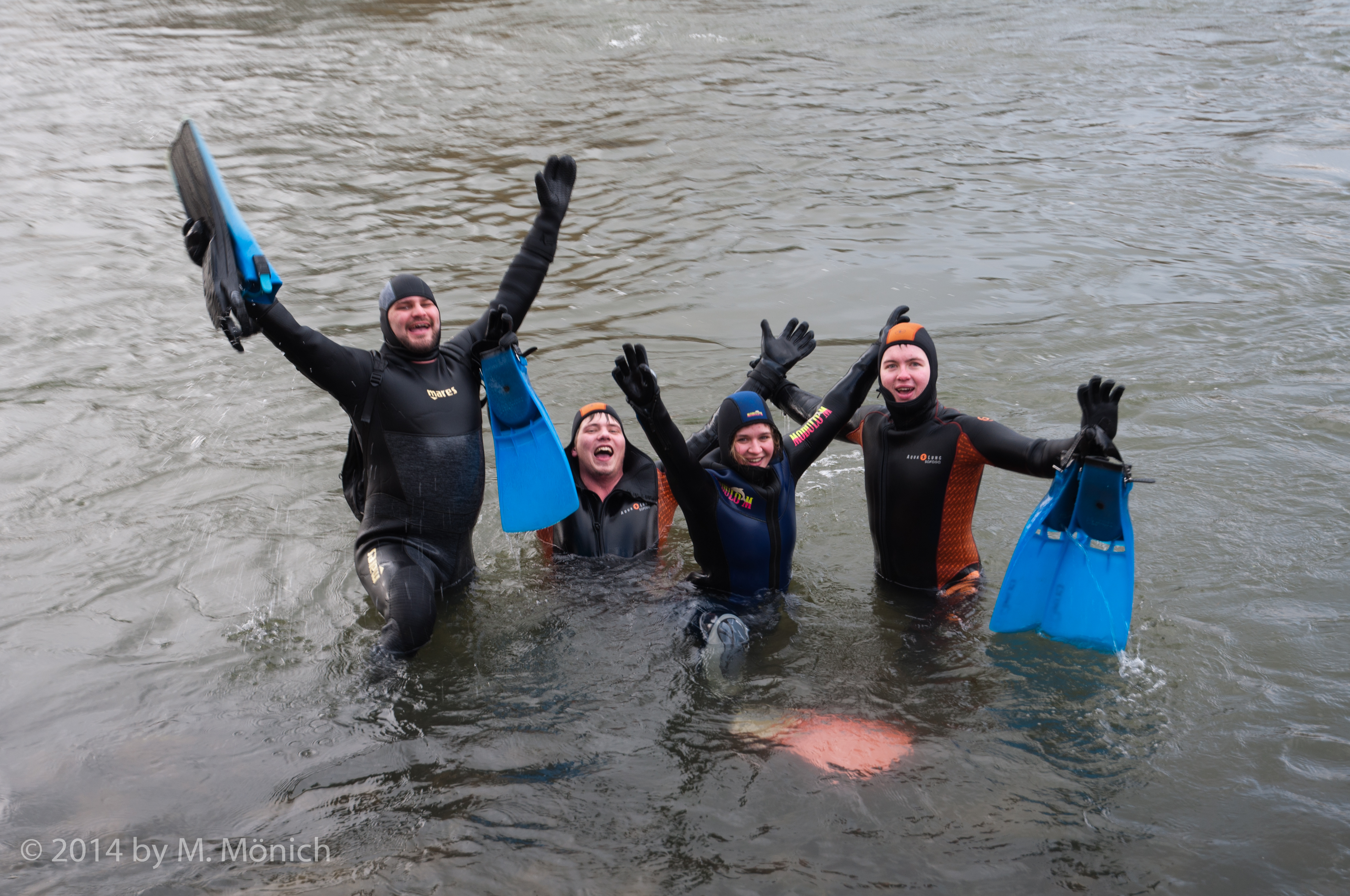 in die 3,2 Grad kalten Fluten der Donau. Das Spektakel begann – die